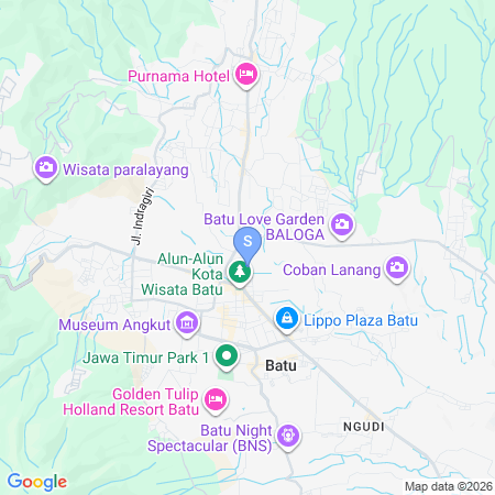 The homestay provides excellent access to the city's key points of interest. The iconic Alun Alun Batu, a central hub for recreation and community gatherings, is a mere 500 meters away. Additionally, the modern Lippo Plaza Batu is conveniently located just 1.4 KM from the property, serving as a major landmark for shopping and entertainment.