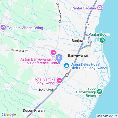 From Banyuwangi Airport (Blimbingsari), you can go to RedDoorz @ Ratu Homestay Syariah Near Lippo Mall Banyuwangi by taxi or online transportation service. The distance is about 15 km and the travel time is around 30 minutes depending on traffic conditions. You can follow the route to Jalan Raya Jember, then continue to Jalan Raya Banyuwangi to reach the property location.
