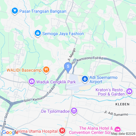 The property is exceptionally close to several key institutions and landmarks. The prestigious Pradita Dirgantara High School is only 600 meters away, while the Setukpa TNI AU training facility is a mere 850-meter journey. For medical needs, major hospitals such as RS UMS (Universitas Muhammadiyah Surakarta) and RS UNS (Rumah Sakit Universitas Sebelas Maret) are conveniently located within a 7 to 8-kilometer radius.